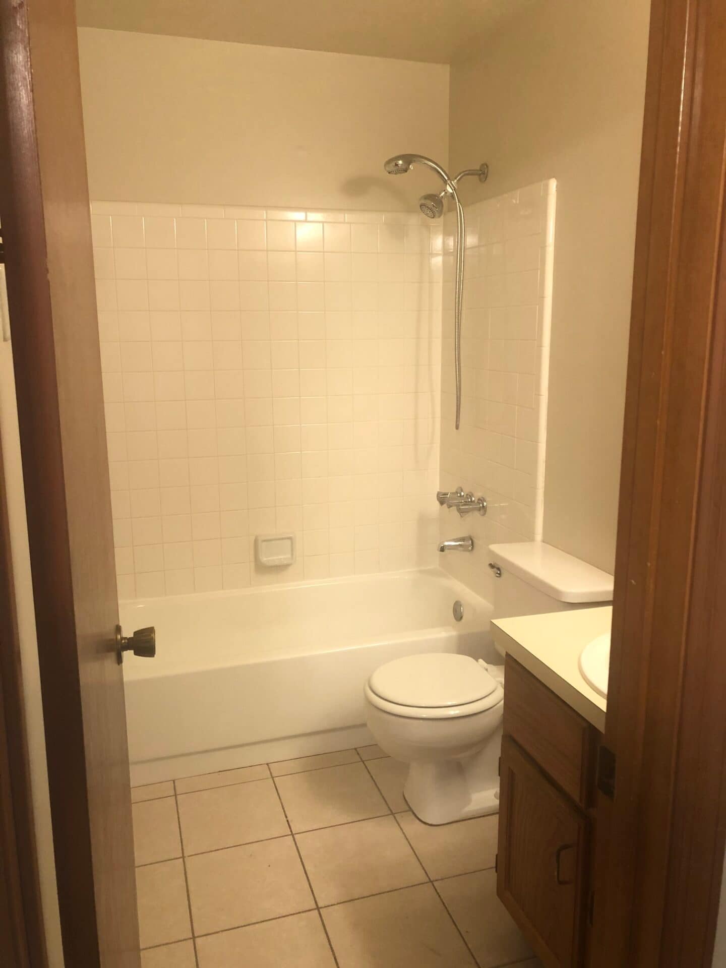The first-floor bedroom is complemented by a full bath with tile flooring and a tub/shower combination.